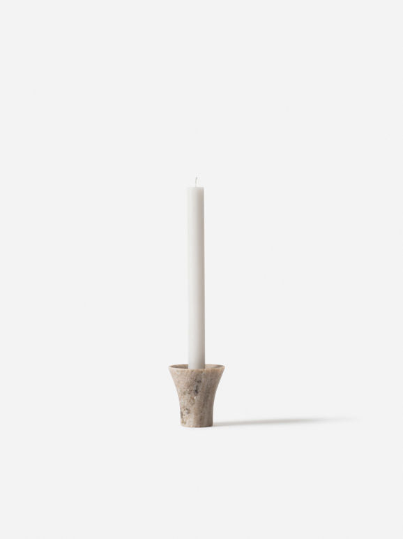 The Flare Candle Holder is a considered, sculptural piece that celebrates the unique tones of the marble in its constructed form. The reversible design creates flexibility, allowing the holder to be used either way up.