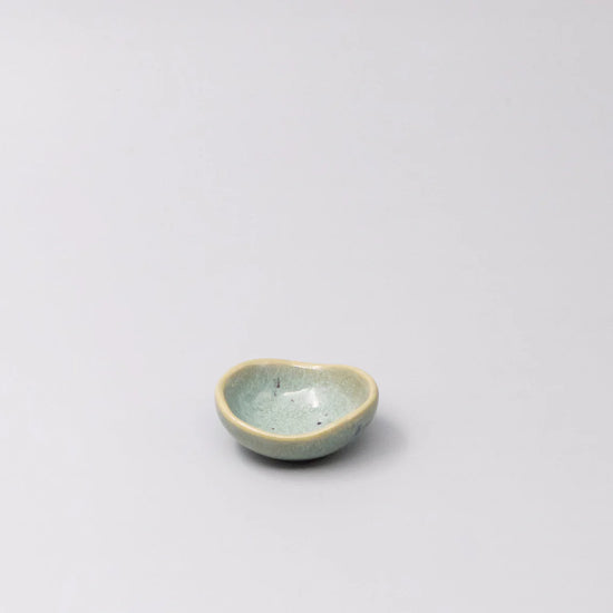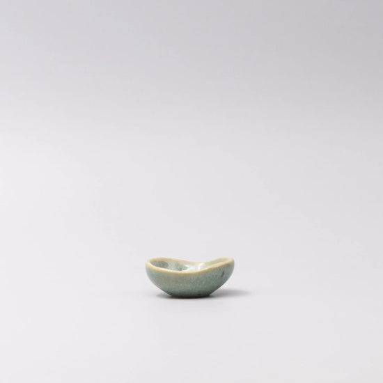 Featuring a delicate hand crafted Bean shape sauce dish in a beautiful mint green glaze. Made of 'Minoyaki' porcelain, fired at a high temperature and hand finished.