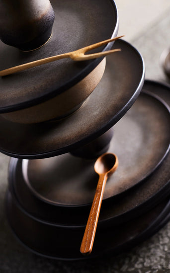 The MUUBS delicate tapas set is part of the Yami Collection, deriving its name from Japanese, Yami means darkness as they made from carbonised Ash wood giving a rich dark brown tone.
