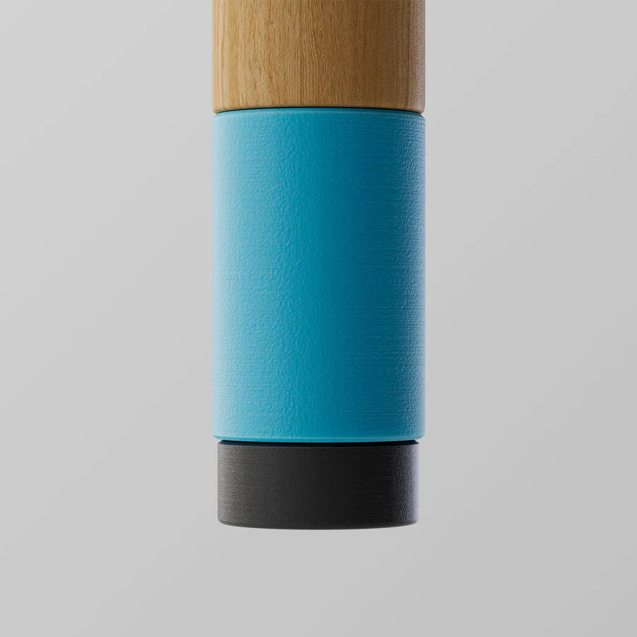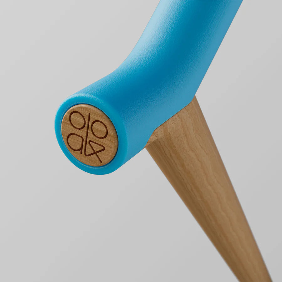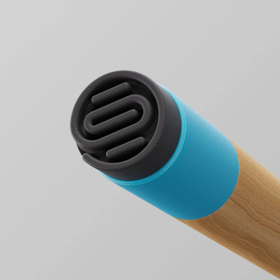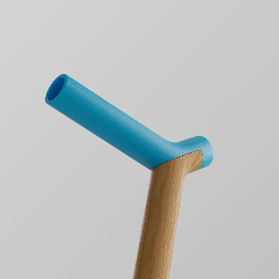 Mix and match Uno's interchangeable components. Its handle and sleeve are made from post-consumer certified recycled plastics, including repurposed fishing nets – a step towards a cleaner ocean. The shock-absorbing, non-slip foot, crafted from natural rubber, ensures a firm and quiet statement with every step.